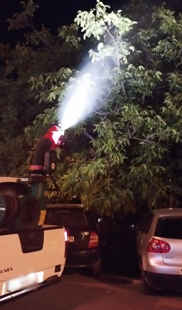 „Substanţa folosită, Perme Plus, este avizată de Ministerul Sănătăţii și are o acțiune insecticidă rapidă. Substanța este recomandată atât pentru controlul insectelor zburatoare, cât și târâtoare.