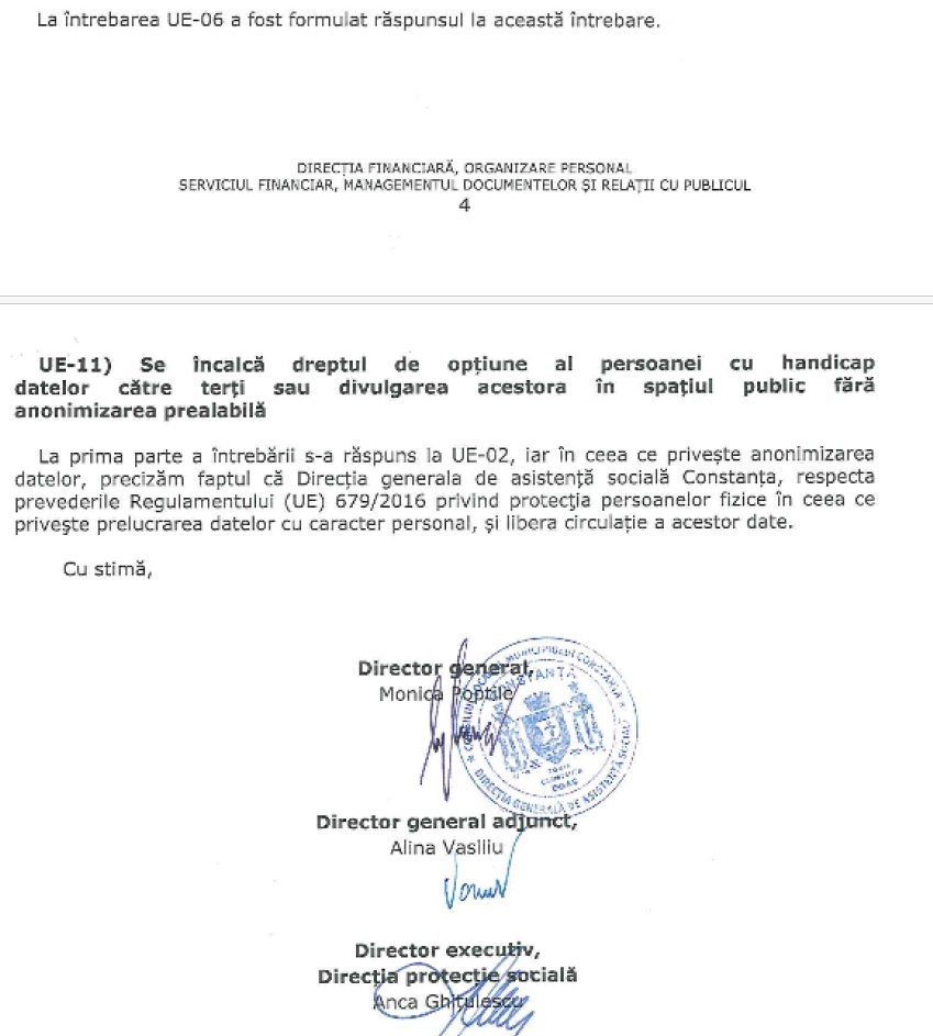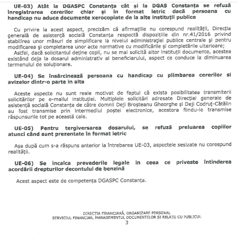 -atat la DGASPC Constanța cât si DGAS efuză înregistrarea cererilor, dacă persoana cu handicap nu aduce documente xerocopiate de la alte instituții publice;