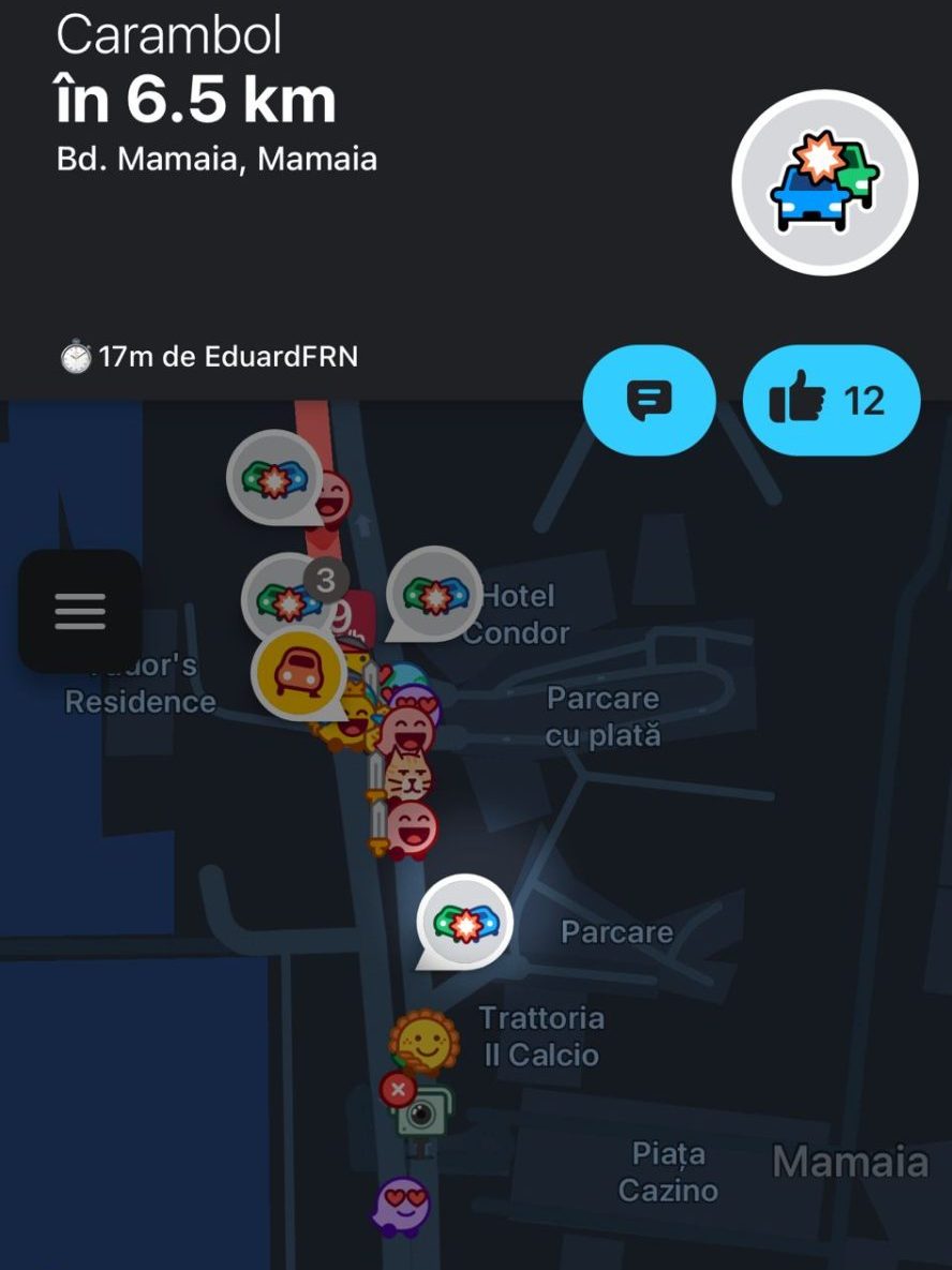 Un accident rutier de tip carambol s-a produs în urmă cu numai câteva minute în centrul stațiunii Mamaia, în apropierea unui sens giratoriu.