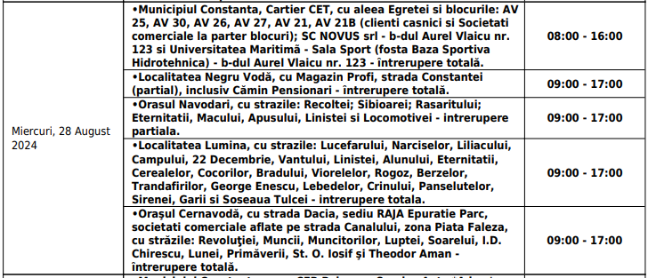 „Lucrările au fost reduse la cele care sunt necesare. Regretăm neplăcerile resimțite de clienți în cazurile în care aceste lucrări, efectuate pentru a preveni eventuale probleme în alimentare, perturbă temporar activitățile acestora”, transmit reprezentanții companiei.