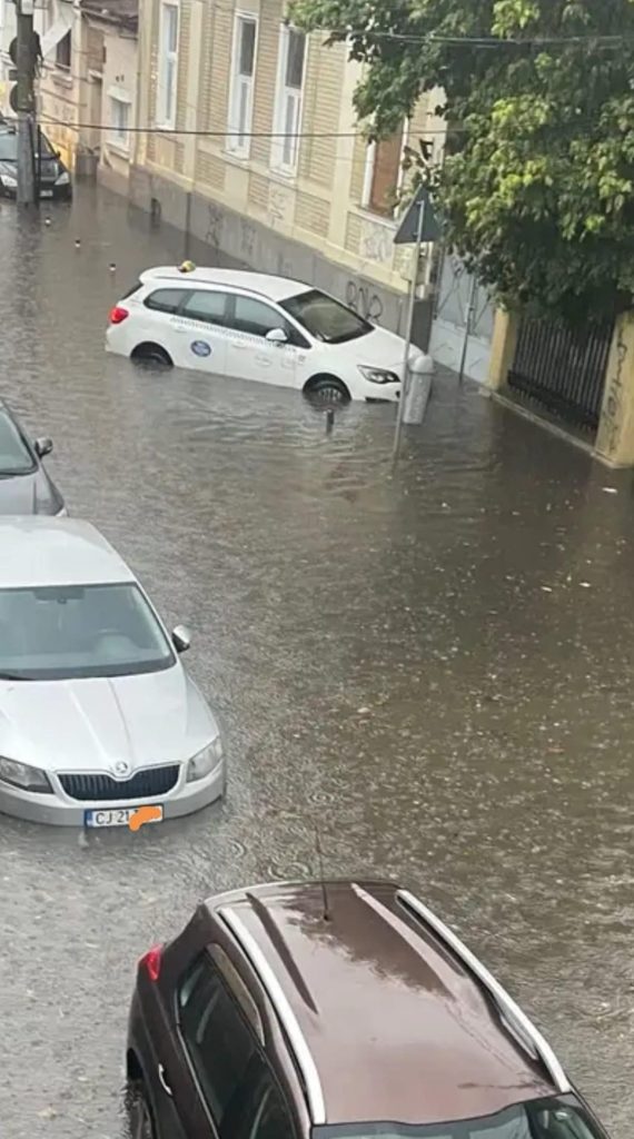 La Cluj-Napoca apa a fost atât de mare pe străzi încât ajungea aproape până la jumătatea portierelor mașinilor.