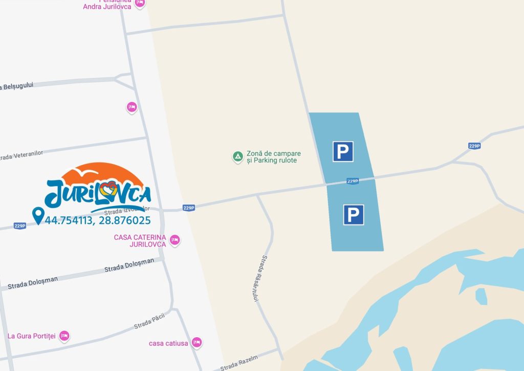 Cele două parcări de la intrările în localitatea Jurilovca au o capacitate cumulată de 15.000 de automobile, iar parcările dinspre Capul Doloșman au o capacitate de 10.000 de automobile. Toate cele patru parcări sunt iluminate pe timp de noapte.