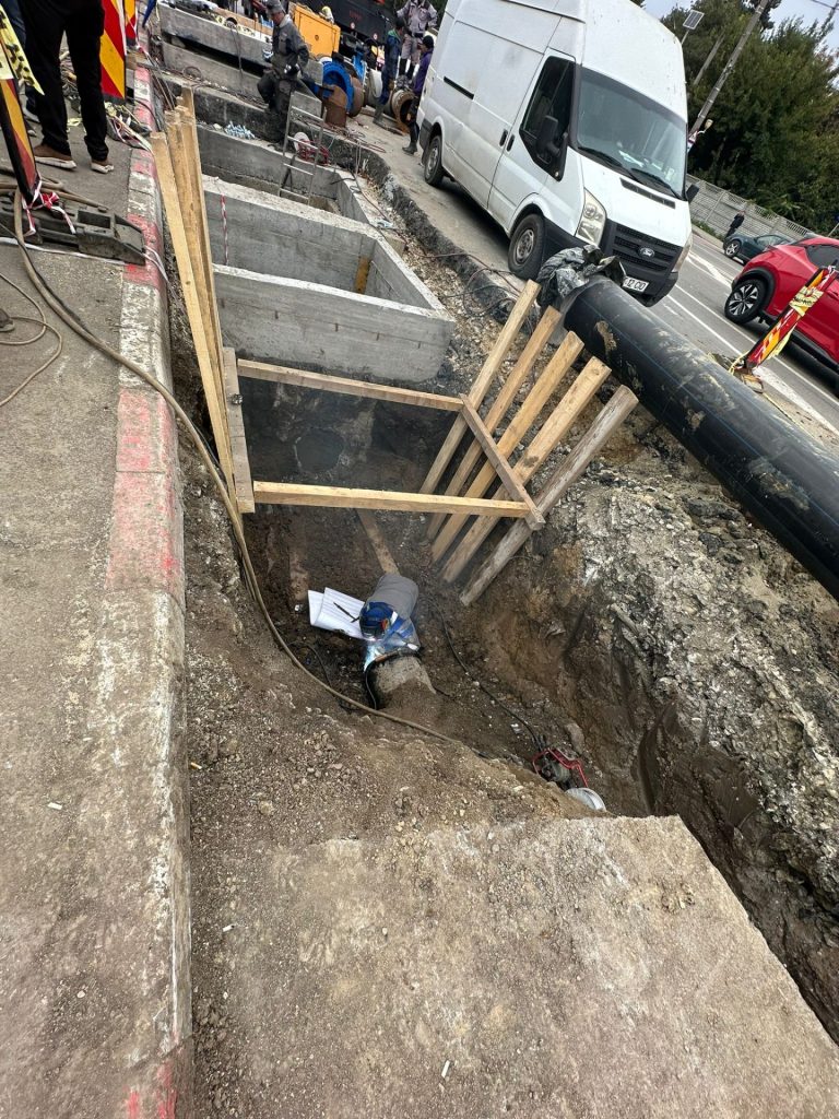 În cele 17 puncte de lucru acționează 23 de echipe de intervenție, dotate cu toate utilajele necesare. La ora actuală, se lucrează pentru cuplarea noilor tronsoane montate deja, magistrale cu diametrul de 500, 600 și 800 mm. Lucrările executate pentru conectarea noilor aducțiuni, au fost îngreunate pe timpul nopții, deoarece golirea magistralelor s-a realizat foarte greu, având în vedere diametrul, dar și lungimea acestora. Echipele aflate pe teren au intervenit prin montarea unor vane, pentru sectorizarea sistemelor, dar și pentru oprirea apei în vederea realizării operațiunilor de sudură. Deși intervențiile sunt dificile, lucrările se află în grafic. La ora actuală, se realizează operațiunile de sudare la instalația existentă, pentru îmbinarea tuturor componentelor şi a armăturilor aferente, dar și montarea vanelor de legătură și a debitmetrelor pentru măsurarea și reglarea presiunii, precizează reprezentanții companiei.
