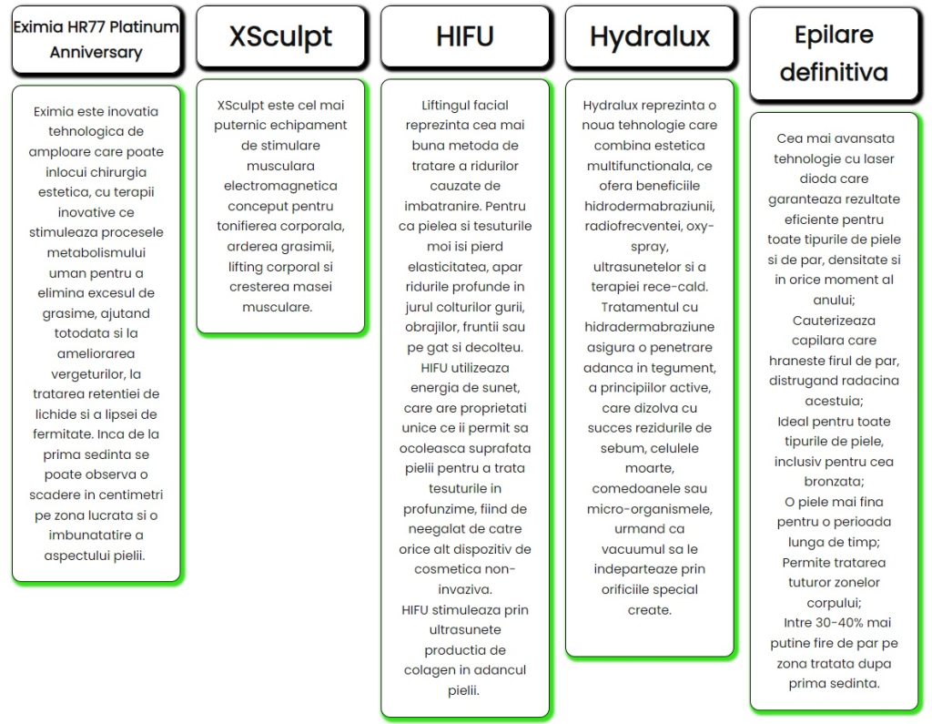 NOAH Beauty Center investește constant în aparatură de ultimă generație, garantând rezultate vizibile și sigure. Fie că este vorba de tratamente faciale sau corporale, fiecare procedură este realizată folosind echipamente premium, care asigură confortul și siguranța clienților.