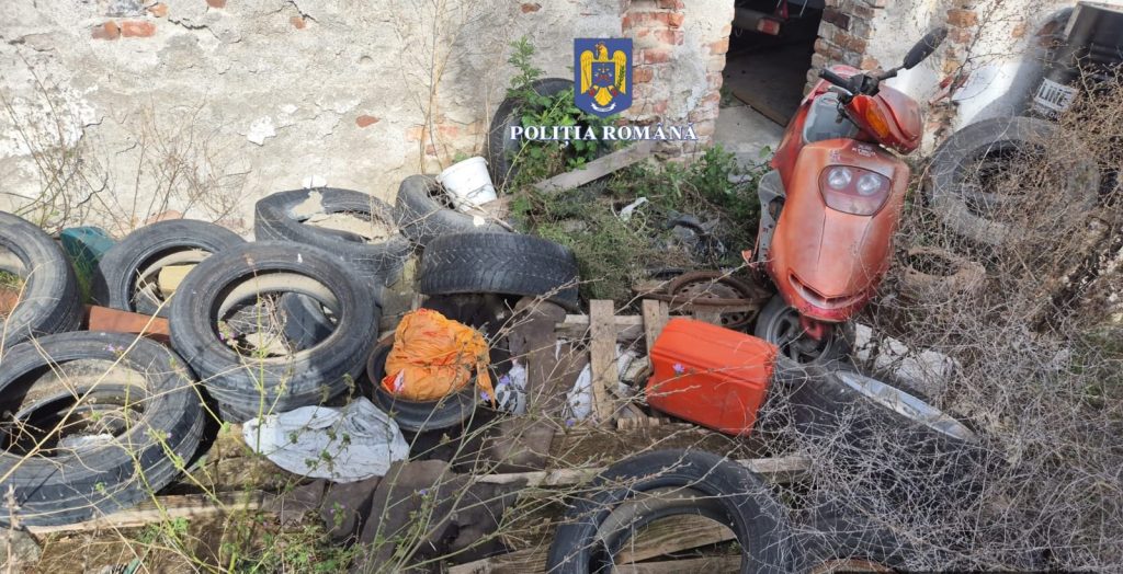 În urma acțiunii, polițiștii au descoperit și indisponibilizat 5 autovehicule aflate în curs de dezmembrare, 200 de kilograme de anvelope, 1.100 de kilograme de deșeuri și 980 de litri de ulei uzat.