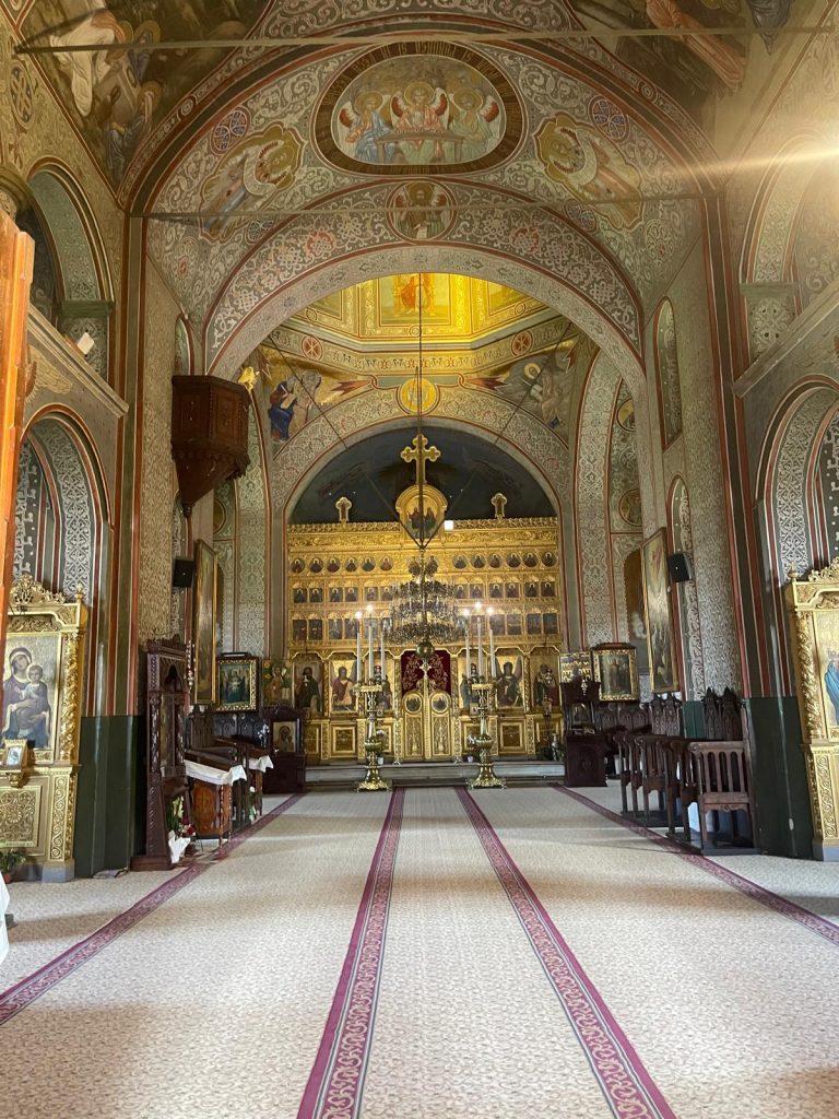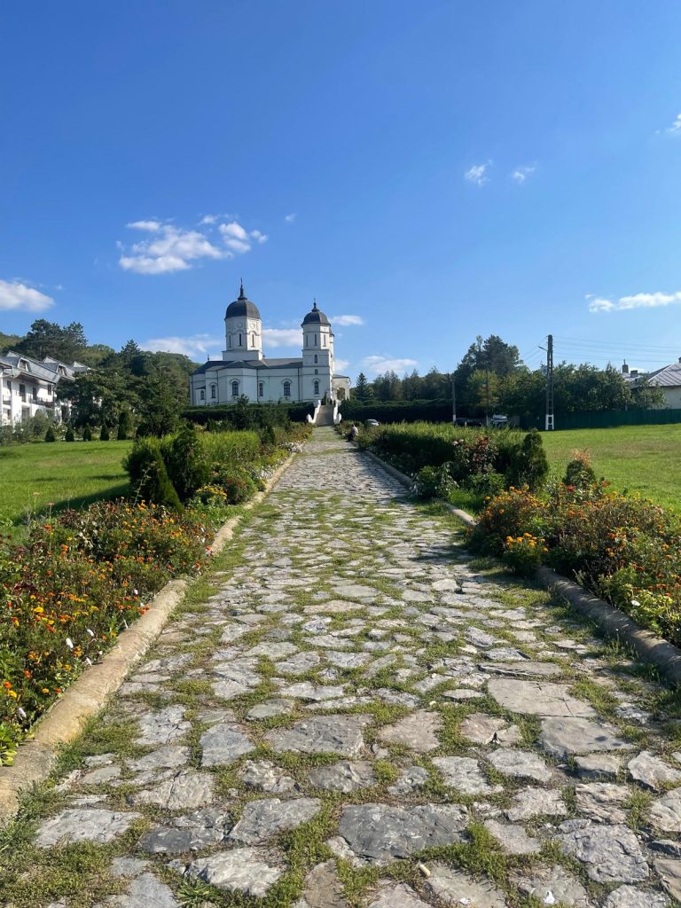 Ca să ajungeți la biserică, trebuie să parcurgeți un urcuș de câteva sute de metri, iar de jur împrejur, putem admira verdele încă viu al naturii. Odată ajunși sus, în fața bisericii, puteți admira frumusețea și măreția sfântului lăcaș.