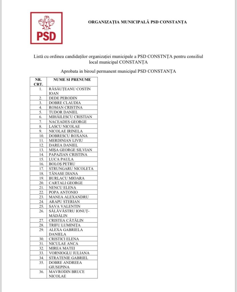 Costin Răsăuțeanu, liderul grupului consilierilor locali PSD a confirmat, pentru OBSERVATOR Constanța, noua componență a grupului PSD.