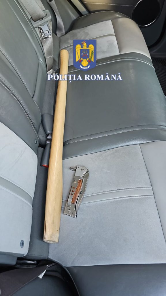 În urma percheziției auto, în vehiculul aparținând bărbatului au fost găsite mai multe arme albe și o pușcă de tip airsoft cu bile.