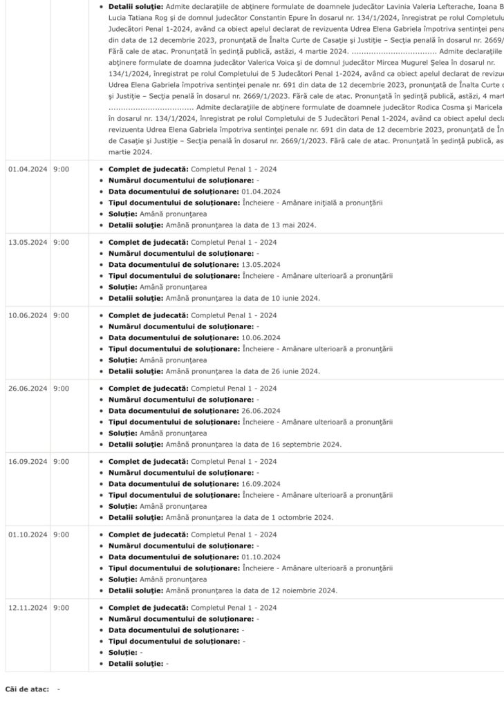 Completul de cinci judecători din cadrul ÎCCJ au amânat propunțarea pentru data de 12 decembrie.