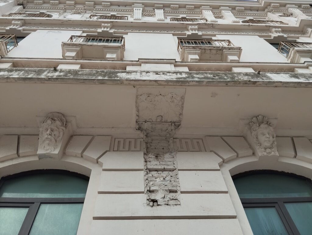 Aici au stat oameni grei, atât de grei încât clădirea a cedat și a început să arate precum vedeți în aceste poze. Glumim, ca să mai îndulcim amarul. În fapt, Hotel Palace este o clădire istorică folosită după revoluție de investitori cu putere care au folosit-o drept hotel, însă fără să investească în lucrări semnificative de restaurare, cel puțin nu la fațade.