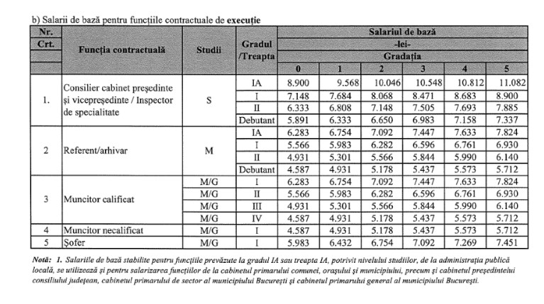 Nu în ultimul rând, iată care sunt salariile de bază pentru funcțiile contractuale de execuție:
