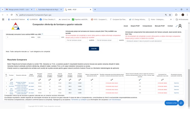 Pe pagina ANRE, la “comparatorul de preț la gaze”, după data de 1 aprilie există oferte de la 4 firme care în fapt sunt deținute de același acționar, ofertele find 100% identice și având toate prețul de 0,31 lei/kWh cu TVA inclus, preț valabil până în septembrie.