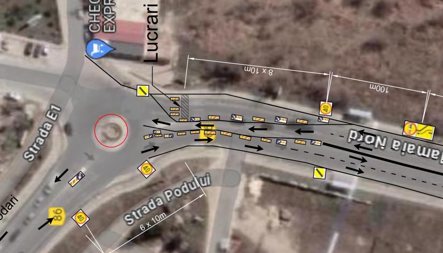 Lucrările sunt executate de către RAJA prin SC Euromateria, iar restricții de trafic sunt impuse prin avizul Poliției Rutiere Constanța.