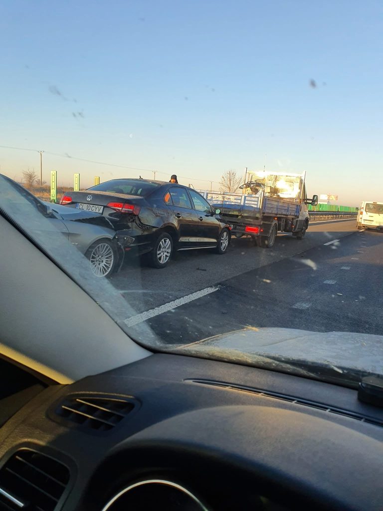 Carambol cu 5 mașini pe A2. Trafic îngreunat