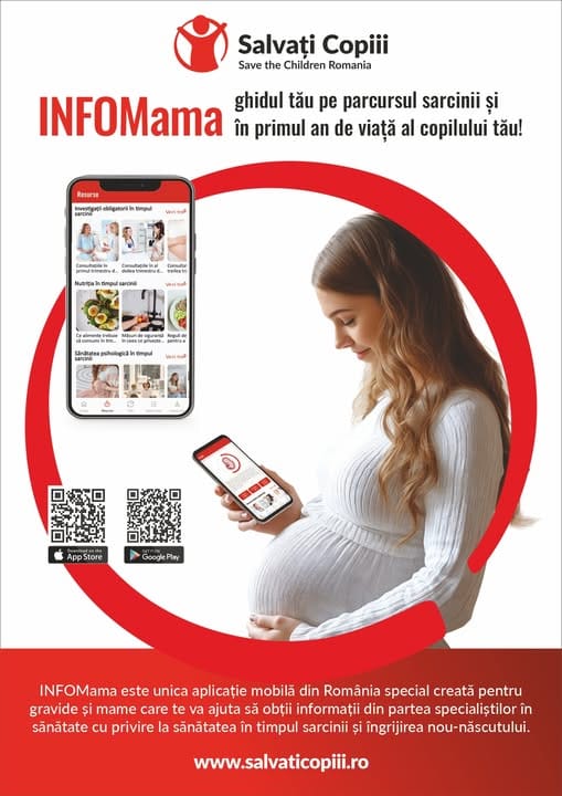 Ca un răspuns concret la toate aceste probleme, Salvați Copiii România a lansat INFOMama – o aplicație mobilă gratuită, gândită special pentru gravide și mamele cu copii de până la un an.