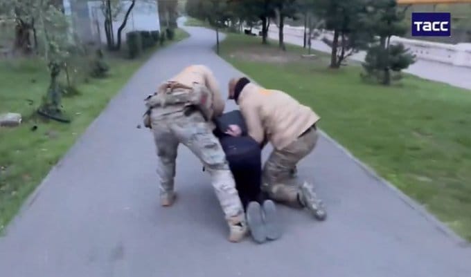 FSB a publicat și înregistrări video cu momentele în care bărbatul este arestat, apoi interogat.