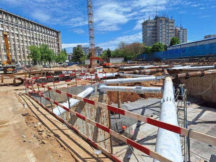 Se lucrează intens, iar până în prezent a fost realizată aproximativ 60% din săpătura necesară pentru fundația clădirii.