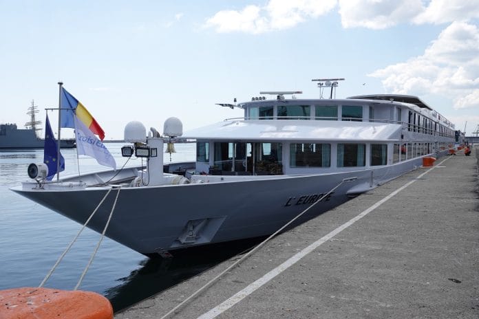 Turiștii străini continuă să vină pe litoralul românesc, inclusiv pe apă. Nava fluvială de pasageri L’Europe, cu pavilion Franța, se alătură astăzi navei River Adagio în terminalul de pasageri din portul Constanța.