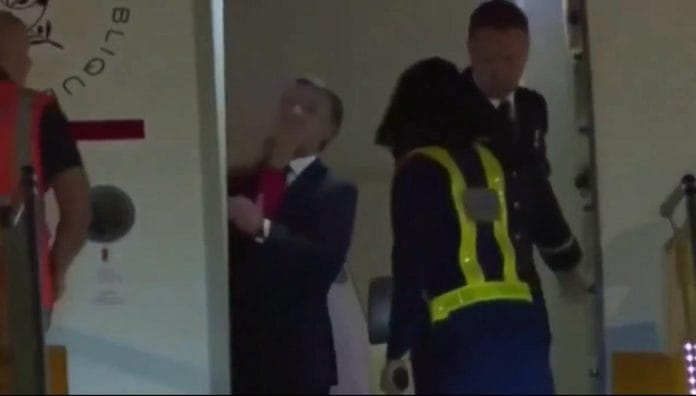Scenele s-au derulat chiar înainte ca cei doi să coboare din avionul prezidențial, pe aeroportul din Hanoi, la sosirea în Vietnam. În imagini se observă cum brațul nevestei apare în cadru și îl lovește pe liderul de la Paris.