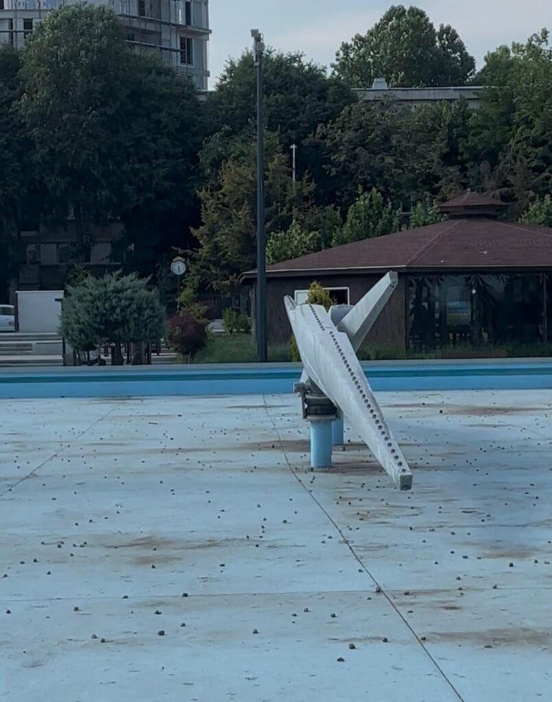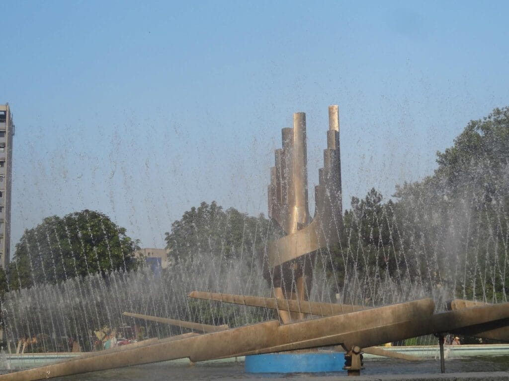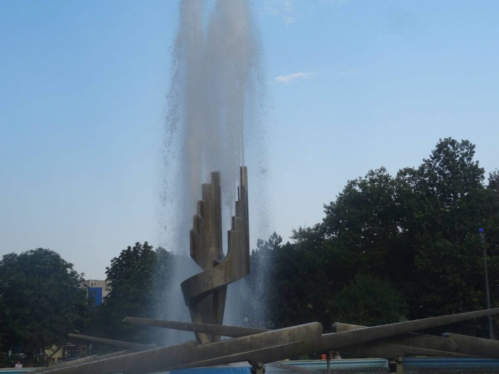 Frustrant este că arhitectura urbană din centru parcului se concentrează fix pe aceasta fântână arteziană nefuncțională. De jur împrejurul ei sunt locuri unde oamenii pot sta să admire jocul apei. Un joc care e însă pe pauză. Până când? Nu se știe. Instalația e uscată, iar în bazinul din jurul ei e praf, nu apă.