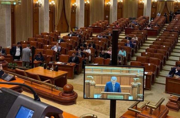 Documentul este citit de senatorul AUR Petrişor Peiu. Şi-au înregistrat prezenţa 193 de parlamentari.