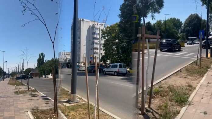 Regenerarea urbană în viziunea autorităților pare să însemne plantări simbolice, urmate de neglijență. Iar rezultatul se vede cu ochiul liber: bețe uscate în loc de copaci.