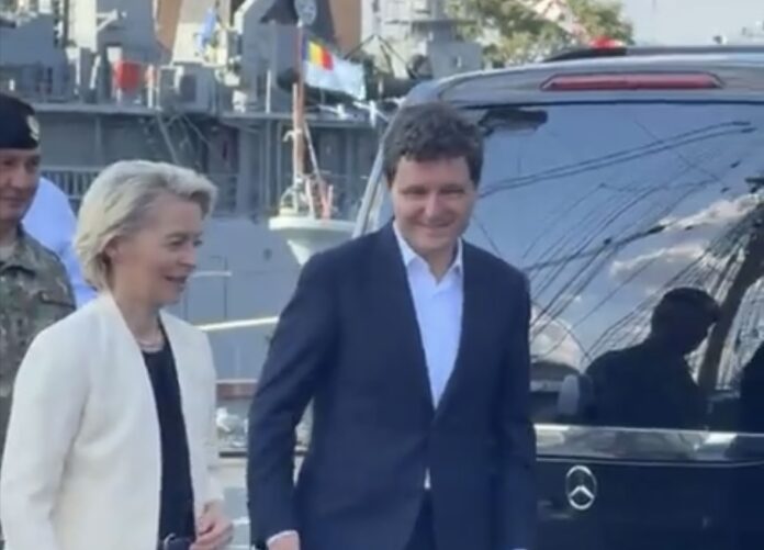 Președinta Comisiei Europene, Ursula von der Leyen, care a ajuns în țara noastră în jurul orei 15, a ajuns în Portul Militar Constanța. Șefa CE a fost întâmpinată la Kogălniceanu, de președintele Nicușor Dan, care o însoțește în vizita sa aici.