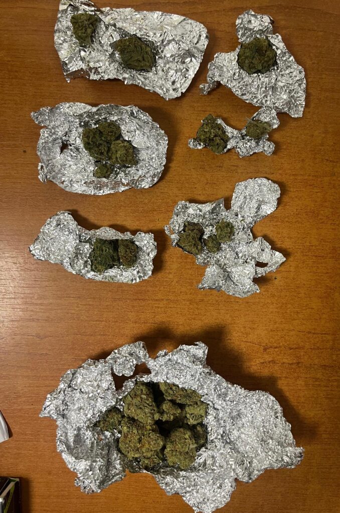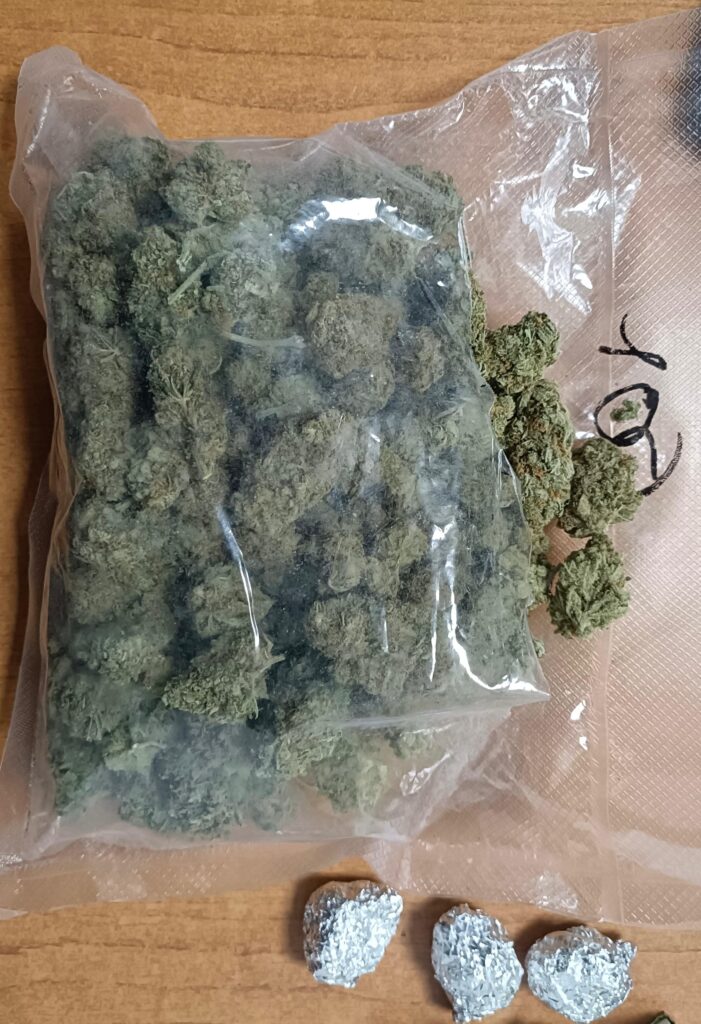 În urma legitimării și a controlului corporal, asupra lui a fost găsit un pachet din staniol ce conținea „o substanță vegetală cu aspect și miros specific„. Întrebat despre proveniența substanței, tânărul a declarat că a cumpărat-o de la trei persoane, dintre care una se deplasa pe o trotinetă electrică.
