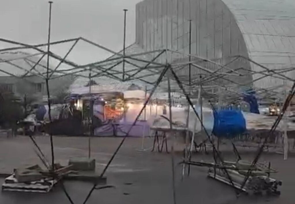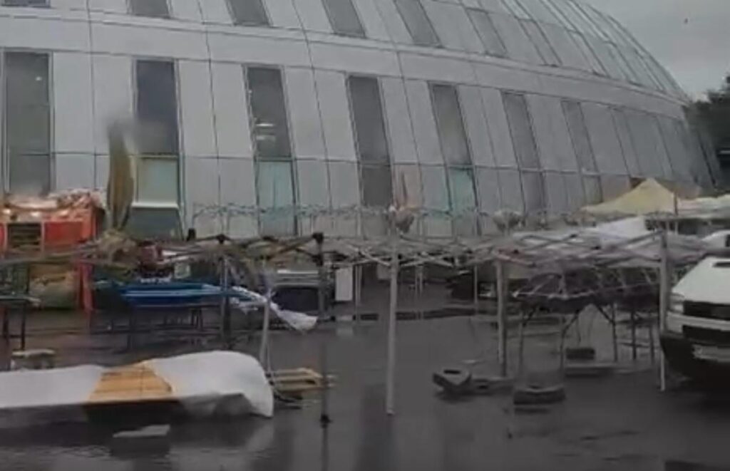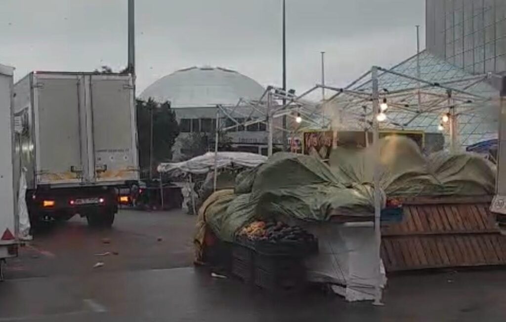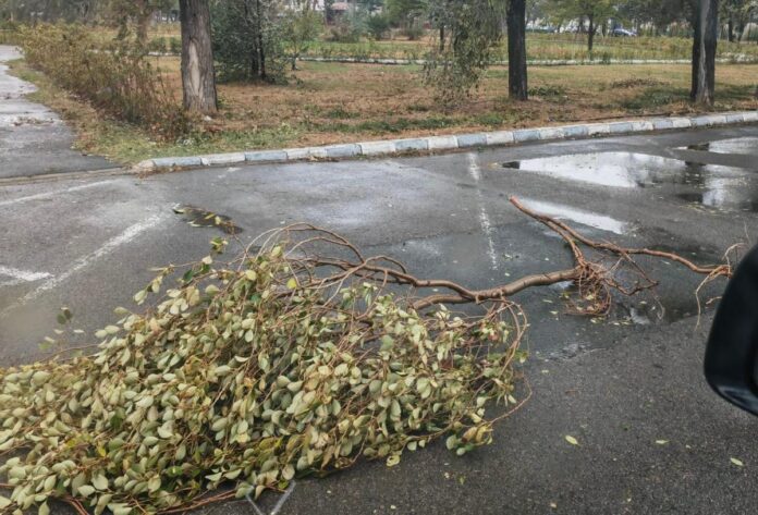 În unele zone din Constanța, vijelia a rupt crengile copacilor, iar pe cei care și-au instalat standurile în fața Pavilionului Expozițional i-a determinat să strângă rapid prelatele corturilor.
