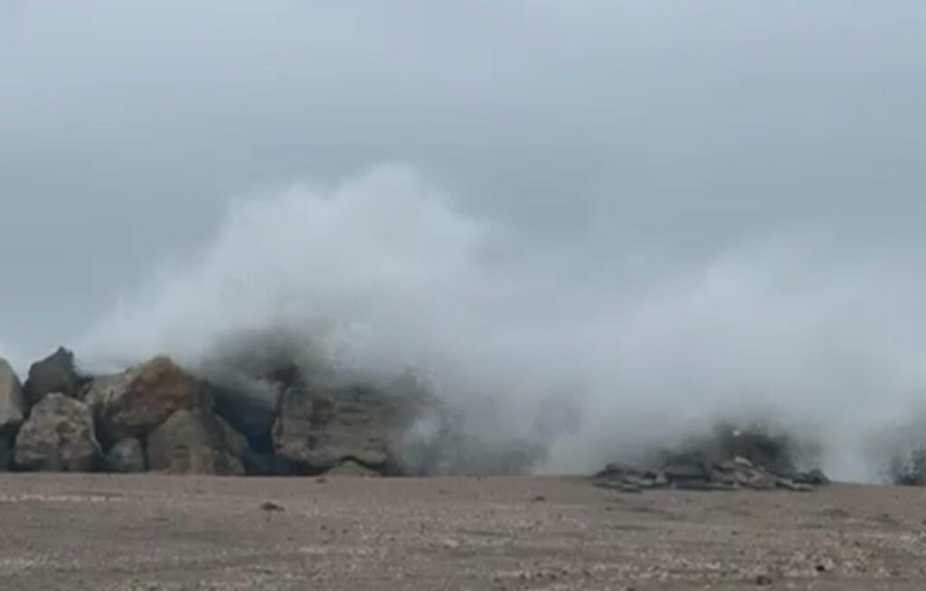Marea pare că fierbe astăzi, alimentată de rafalele puternice, care ridică valurile, ce se izbesc apoi cu putere de stabilopozi.