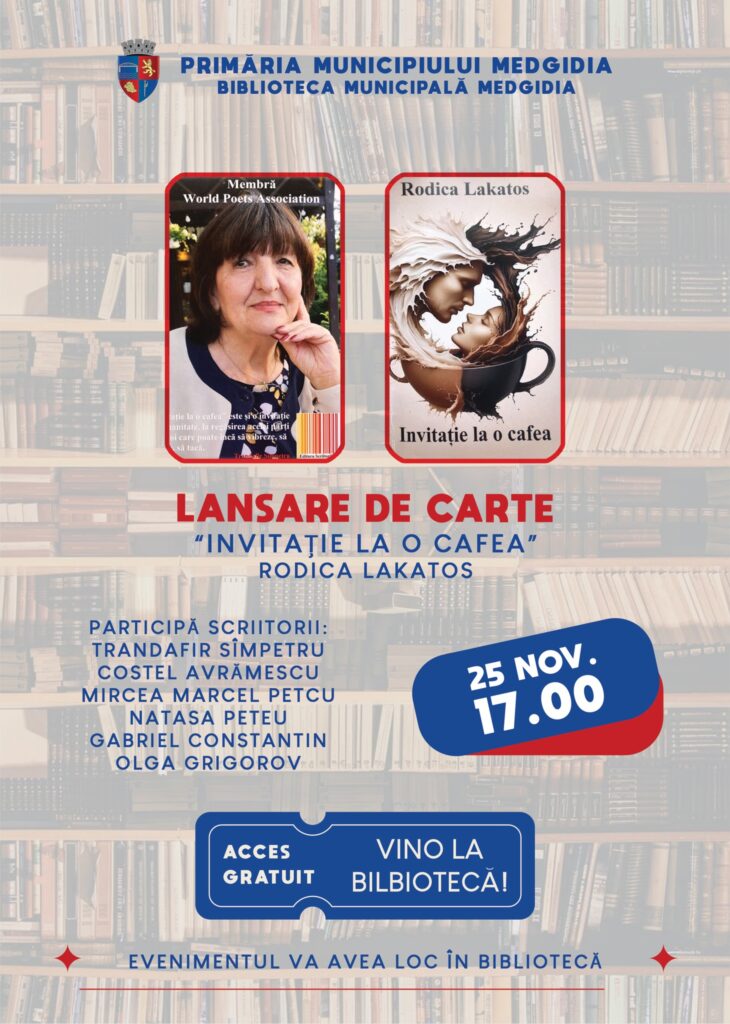 Marți este o zi sub semnul poeziei, la Medgidia, unde vor avea loc două evenimente culturale, ambele în cadrul Casei de Cultură „I. N. Roman” din oraș.
