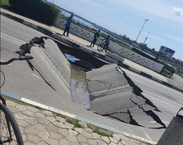 Un crater uriaș s-a format pe un pod din Techirghiol, unde asfaltul s-a surpat pur și simplu. Imagini de la fața locului au fost postate de localnici pe paginile de socializare.
