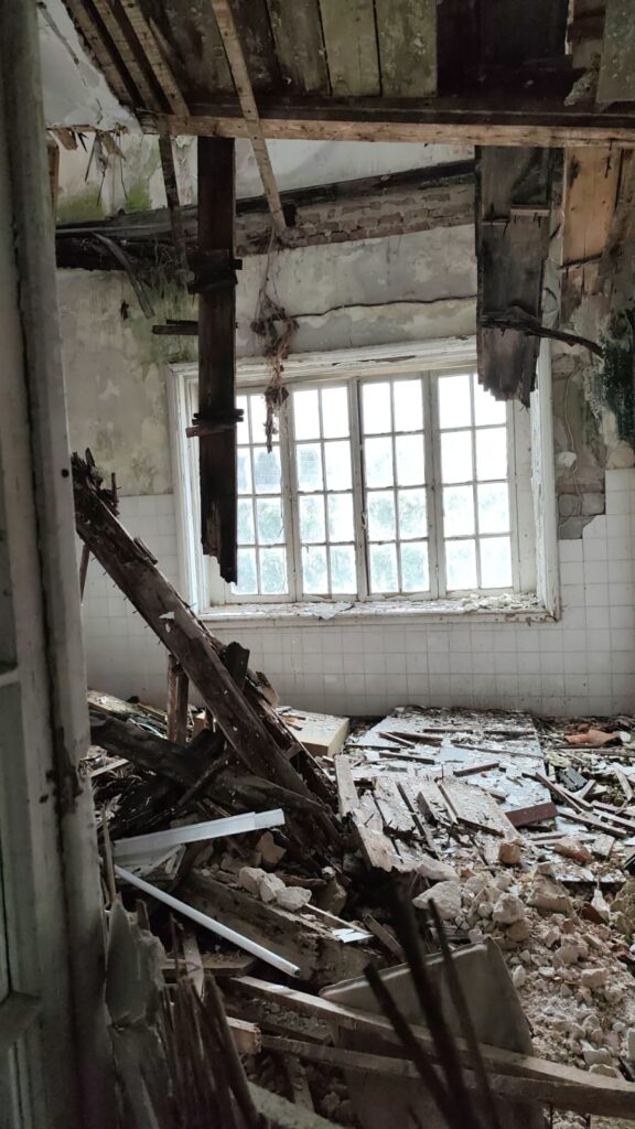 La interior, tavanul din camera serverelor firmei de pază s-a prăbușit parțial. La exterior, o porțiune din structura de lemn a acoperișului a cedat în zona de nord-vest.